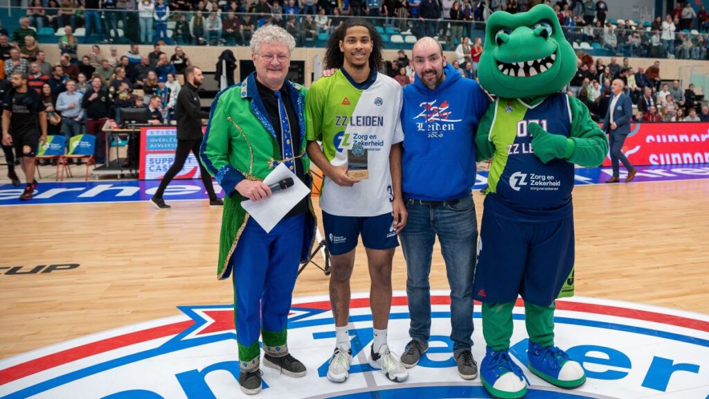 Tajion Jones is door de ZZ Leiden-supporters gekozen als Speler van de Maand December! De Amerikaan werd zaterdagavond voorafgaand aan het duel tegen Zeeuw & Zeeuw Basketball Feyenoord in het zonnetje gezet. Uit handen van Rutger de Ligny van supportersvereniging De Blauwe Brigade kreeg hij de Speler van de Maand-trofee, gemaakt door awardguru.nl.